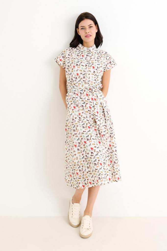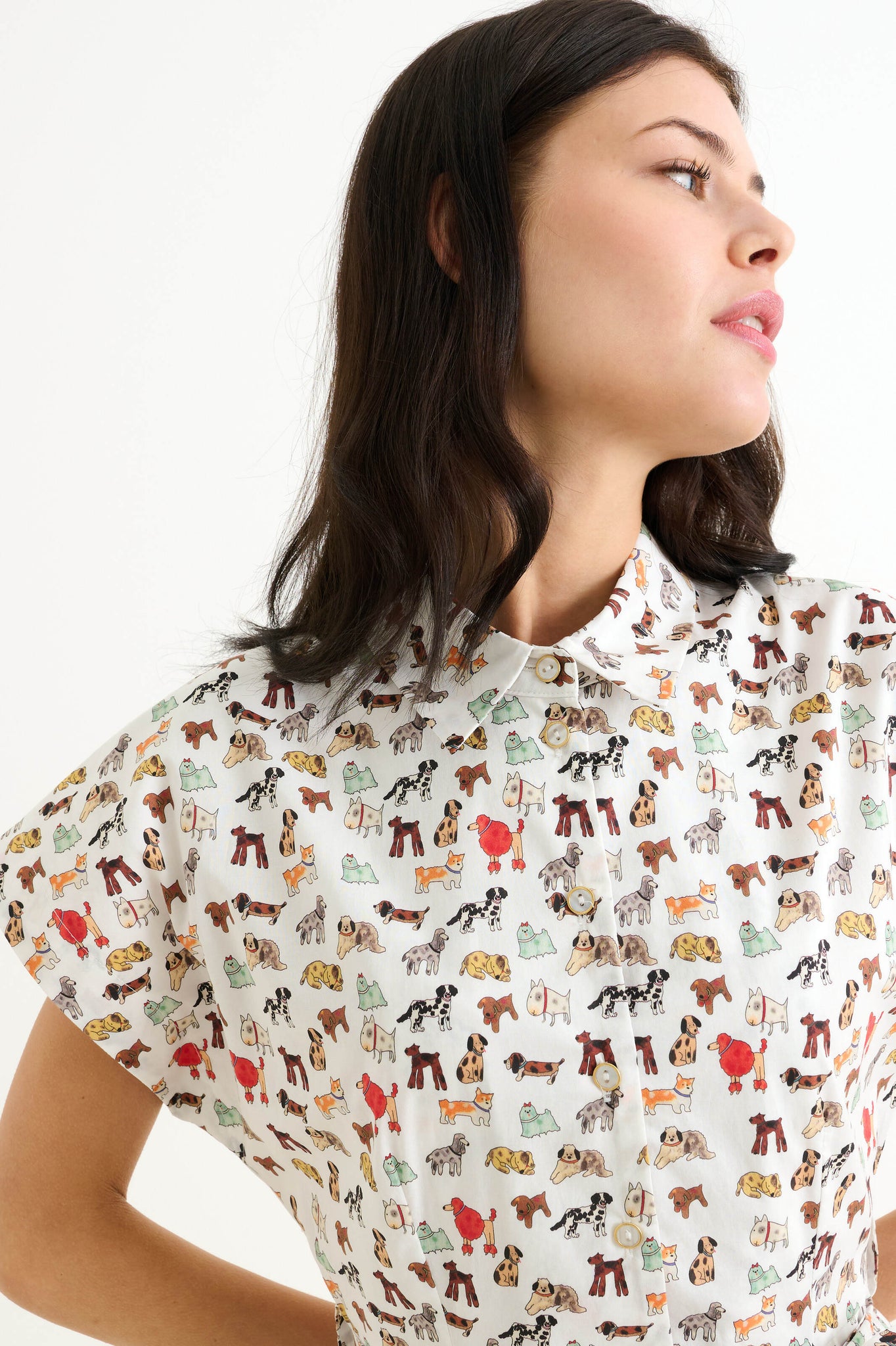 Danica är en fantastisk skjortklänning i skön bomull från Louche med mönster av olika hundraser! Knyt i midjan och fickor. Matcha med din hund och de färger som finns i klänningen.