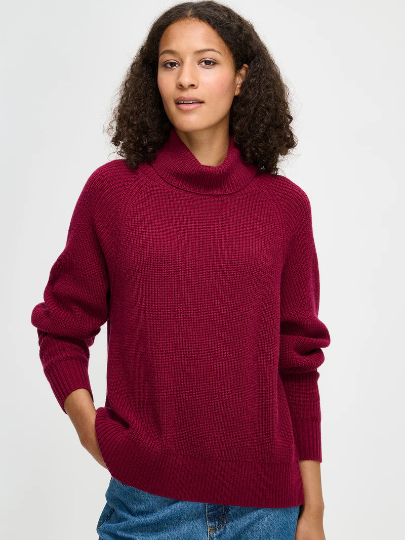 Denna snygga tröja från Nanso har polokrage och långa raglanärmar. Tröjans längd i storlek M är cirka 60 cm. Tröjan är tillverkad av halvlackerad stickning.