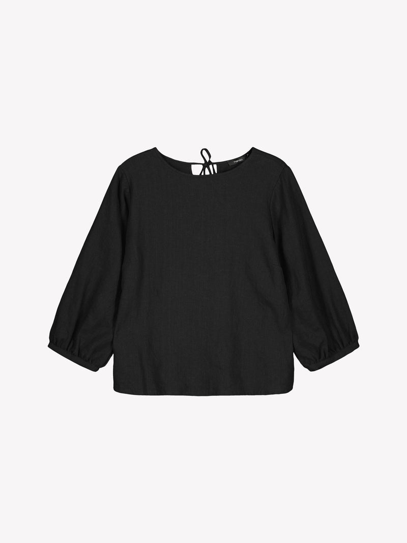 Saralia är en skön och vacker svart linneblus från Nanso. Den tidlösa linneblusen passar enkelt till olika outfits och tillfällen. Den har en bekvämt avslappnad design och är ändå alltid ett snyggt val för både vardag och festligare tillfällen.