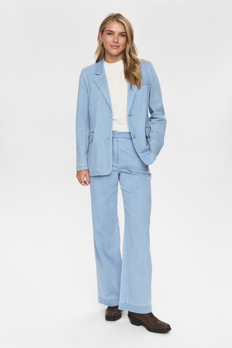 Nualetta blazer från Nümph är en tunn och mjuk denimkavaj som du kan bära för att matcha Nualetta pants, eller över en klänning. Nualetta har ett fantastiskt mönster i mörkblått och vitt som du med fördel kan flasha genom att vika upp ärmarna eller bära den öppen. Klädda knappar och fickor.