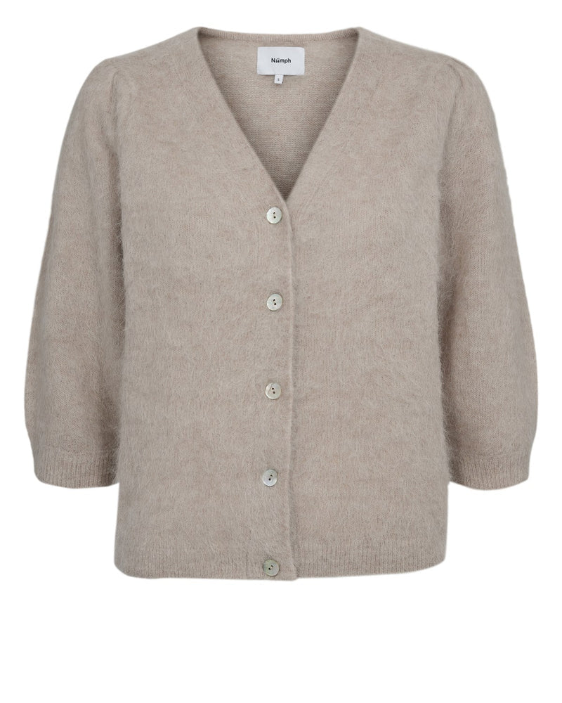 Nusuri är en fin stickad kofta från Nümph i ullblandning. Ärmen går till strax nedanför armbågen och ringningen är V-ringad.