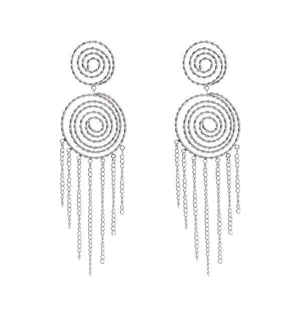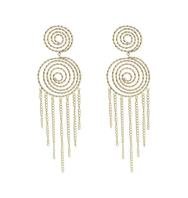 Inez är med sin nätta och bohemiska design det perfekta statementörhänget att bära både till vardags och fest. Örhänget består av två delar med hängande kedjor nedtill och liknar en drömfångare i sin form. Kommer i guld och silver.
