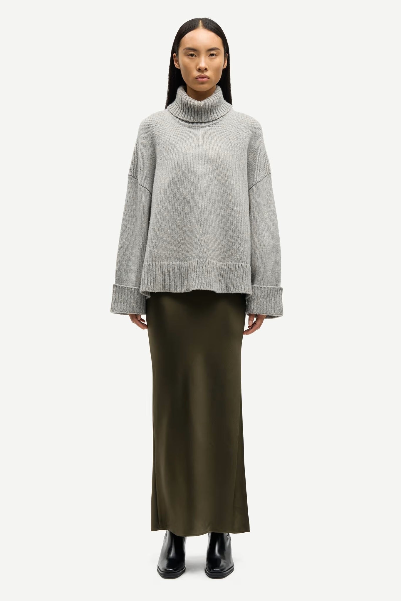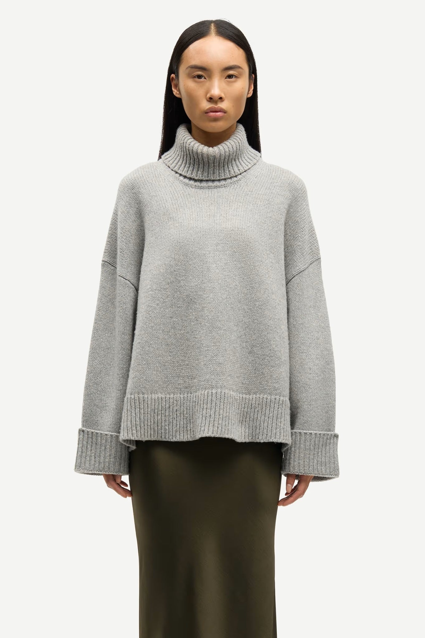 Polotröja med oversized passform och nedsänkta axlar. Ribbstickad krage, ärmuppslag och fåll. Huvudmaterial är tillverkat av en blandning av ull.